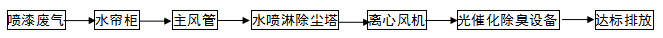 噴烤漆廢氣處理工程(水噴淋(lín)+紫外光光催化除臭設備工工藝圖)
