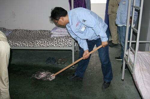 “兩學一做”,基礎在學,關鍵在做。大會結束後,所有與會黨員以黨小組為單位分為四組開展“從身邊(biān)做起,走進員工生活”實踐活動,對國望高科生活區的員工宿舍和外圍地麵進行義務(wù)打掃(sǎo)。有的拿著小鏟子對地麵上的口香糖進行清理,而有(yǒu)的(de)則進(jìn)入宿舍對樓道垃(lā)圾(jī)進行清掃,每一位黨員都把自己負責的範圍當成自己家一樣認真地(dì)打掃著。為員工服務,黨(dǎng)員們爭先恐後、盡責盡力。國望支部副書(shū)記張建國帶領(lǐng)第(dì)一小組負責員工宿舍的清掃整理,為了員工有一個更幹淨整潔的環境,張建國還帶頭為員工打掃衛生間(jiān)。張建國表示:“一個合格的黨員(yuán),就應該從群眾中來,到群(qún)眾中去,為員工(gōng)辦實事就要不怕(pà)髒不怕累,隻有走進他(tā)們的生活(huó)才能知道員工到底需要些什麽。”一些員工下班回到宿舍(shě)表示(shì)差點以為(wéi)自己走錯宿舍,聽到員工們的讚歎和感謝,黨員們紛紛表示將(jiāng)堅持(chí)參加更多的組織活動,努(nǔ)力用實際行動為黨(dǎng)旗增光添彩。